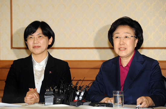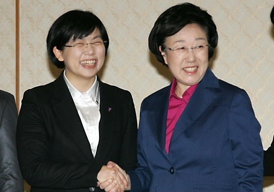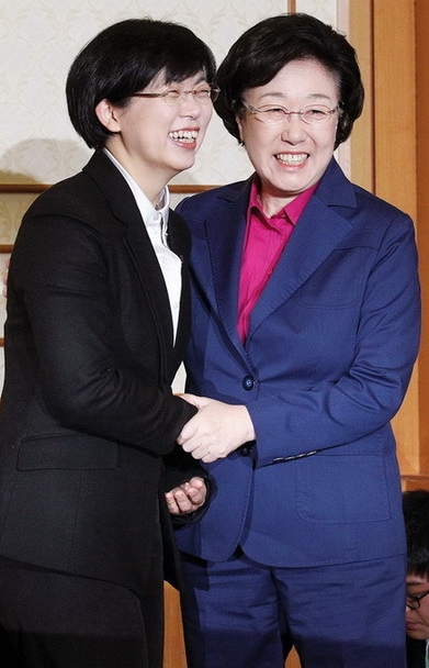 민주당 한명숙 대표와 통합진보당 이정희 공동대표는
