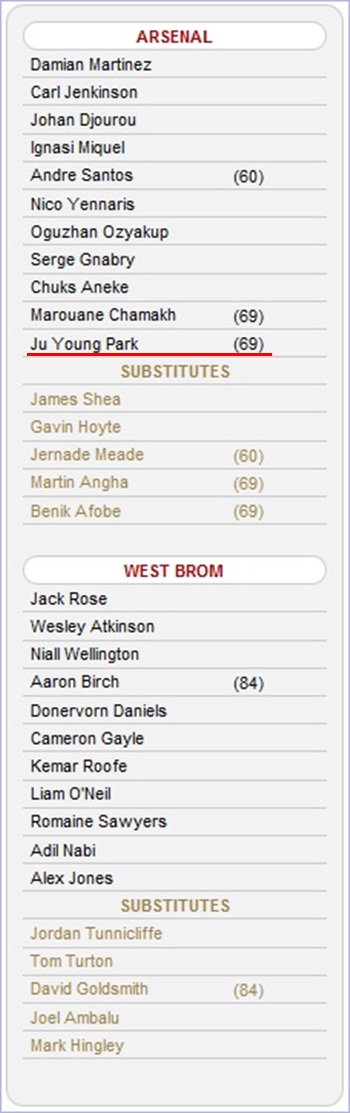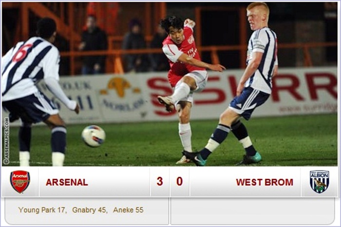 박주영이 웨스트 브롬과의 리저브전에 선발 출전하여 선제 결승골을 넣었습니다.